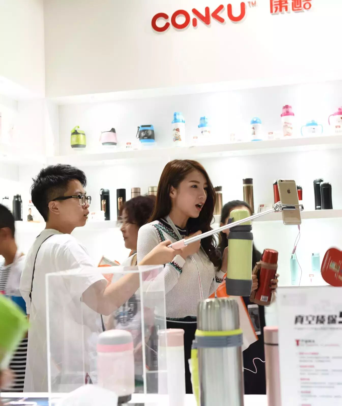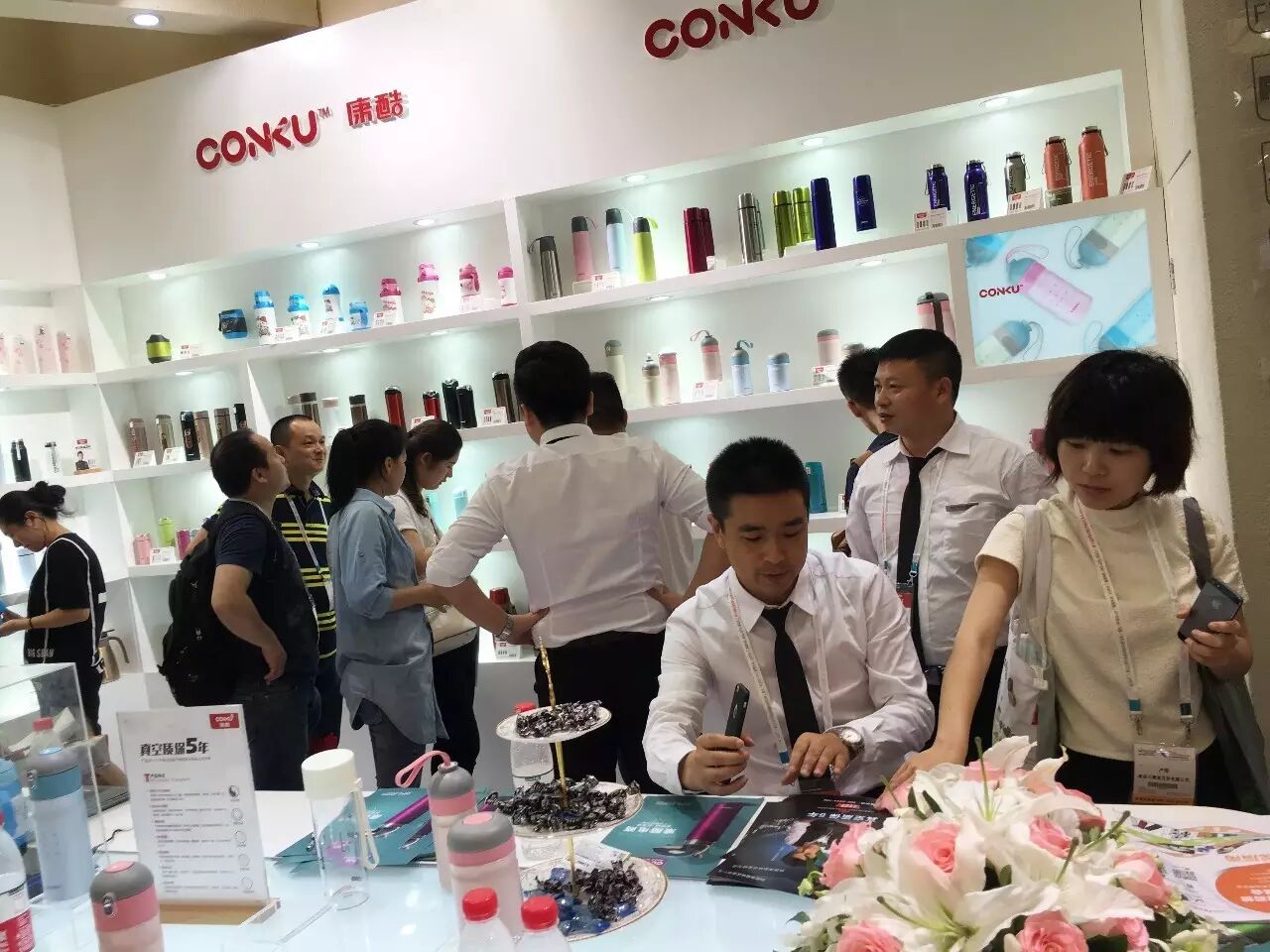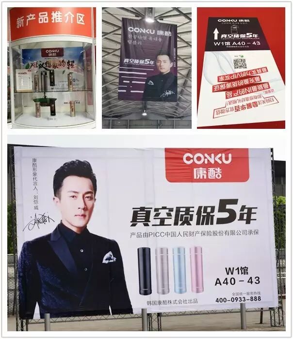 韩国康酷展位位于W1馆A40-43。全新亮相的保温杯系列,展厅一经亮相便吸引了无数新老客户及观众的驻足,场面十分火爆。独特的韩装导购形象,精彩的产品讲解师演讲,大气的品牌宣传片,时尚的保温产品,LED屏全天播放,让观众们流连忘返!