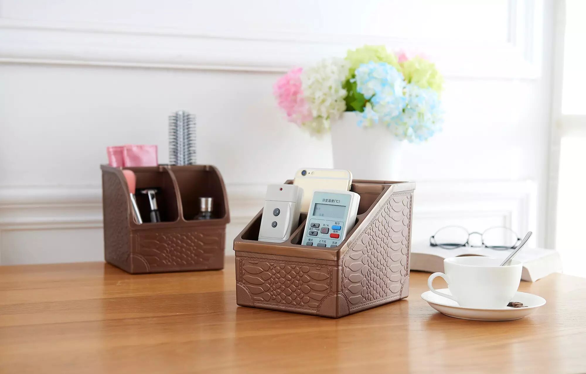 1.环保PP材质,安全卫生;可反复水洗,不掉色;2.保护壳封边,流线型设计,更美观、安全;3.分隔设计,合理布局,让收纳更有序;4.底部加高垫脚设计,防止底面刮花。